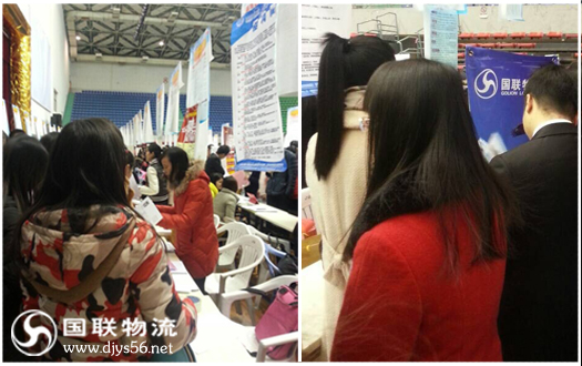 2014年12月18日,湖南国联物流3位靓丽的美女们,早早的就去到了湖南涉外经济学院的大型招聘会场,布置好一切,等待着求职生的到来。整个会场有上百家企业,即将求职的学生也是非常之多,每一个学生在会场中都认真的选择着自己心目中想应聘的职位和公司。
