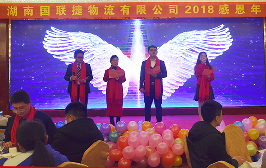 湖南物流公司国联物流在湘府新都大酒店举办了以“创新升级,连接共享”为主题的2018感恩年会。特在四楼湘府厅门口设签名墙合影留念,热烈欢迎百忙之中抽空到来的客户朋友,并为每一位到来的客户朋友戴上充满祝福的红围巾,送上情意满满的伴手礼。