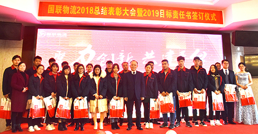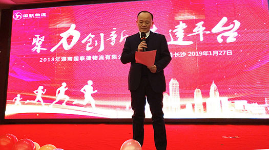 湖南物流公司国联物流全体伙伴欢聚一堂,在长沙市雨花区湘府新都大酒店四楼潇湘厅举行了以“聚力创新,共建平台”为主题的2018年终总结表彰大会暨2019年目标责任书签订大会。