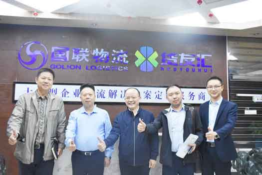 湖南物流公司国联物流货友汇平台发展情况莅临我公司进行考察指导,集团董事长刘铁鹏先生、平台总监李敏、技术开发部邓杰华汇报工作。