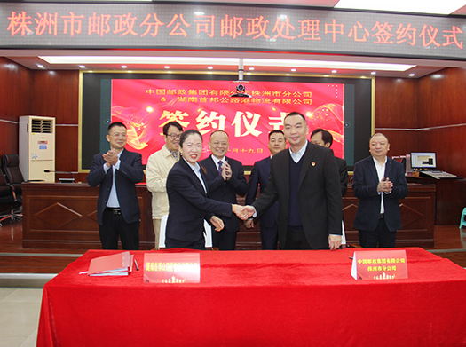 10月19日上午,湖南首邦物流集团与中国邮政株洲市分公司在历史文化名城、中国动力之都株洲隆重举行了株洲市邮政处理中心入驻株洲市现代综合物流园签约仪式,湖南首邦物流集团(湖南国联捷物流有限公司)董事长刘铁鹏与中国邮政株洲市分公司副总经理向林分别致辞,湖南首邦公路港物流有限公司总经理谢娇连与中国邮政株洲市分公司总经理刘东晖代表双方签约,合作双方的管理团队与各新闻媒体单位代表出席。