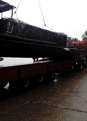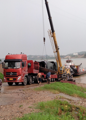 您的位置:首页 >> 典型案例 >> 大件运输服务案例 >> 市政工程运输案例 >> 湖南株洲大型船舶运输——铁船运输